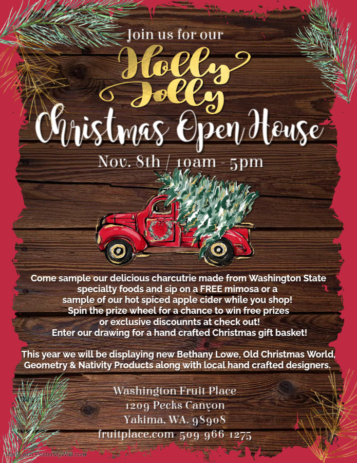 Come sample delicious charcutrie made from the great Washington State! Sip on a FREE mimosa or hot spiced apple cider while you shop. Prizes, Raffled and much more!!