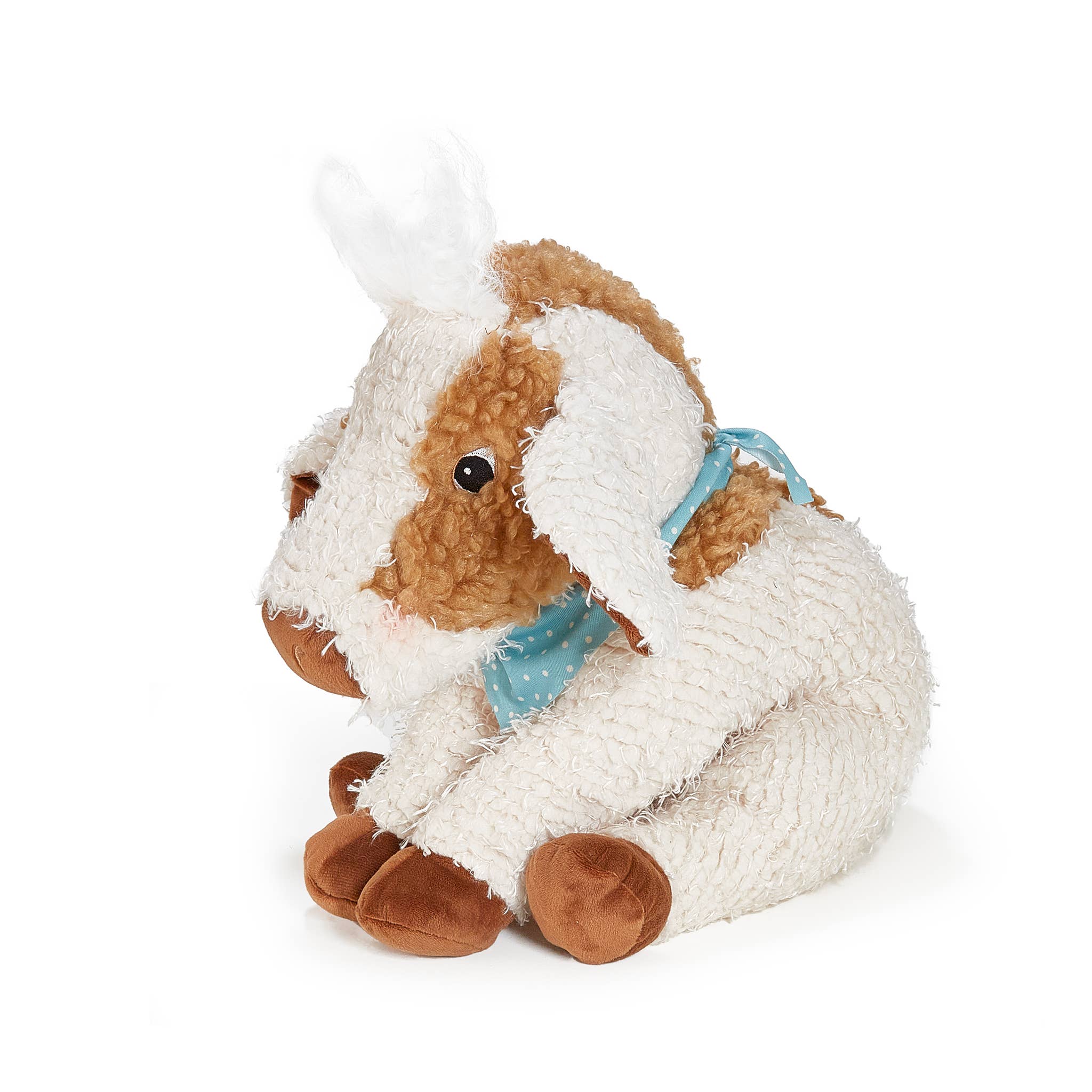 Hello Big Moo Moo, the cuddliest cow in the meadow! This large cow stuffed animal, affectionately named Big Moo Moo, is crafted with cream and mocha brown shaggy textured fur that’s irresistibly soft to the touch. With velvety hooves and a snout perfect for gentle snuggles, Big Moo Moo has embroidered eyes that add to its friendly personality. Topped off with a tuft of fure on its head, this plush cow is ready to bring joy and comfort to littles ones and cow lovers alike. A delightful addition to any cozy corner, Big Moo Moo is the ultimate plush companion!