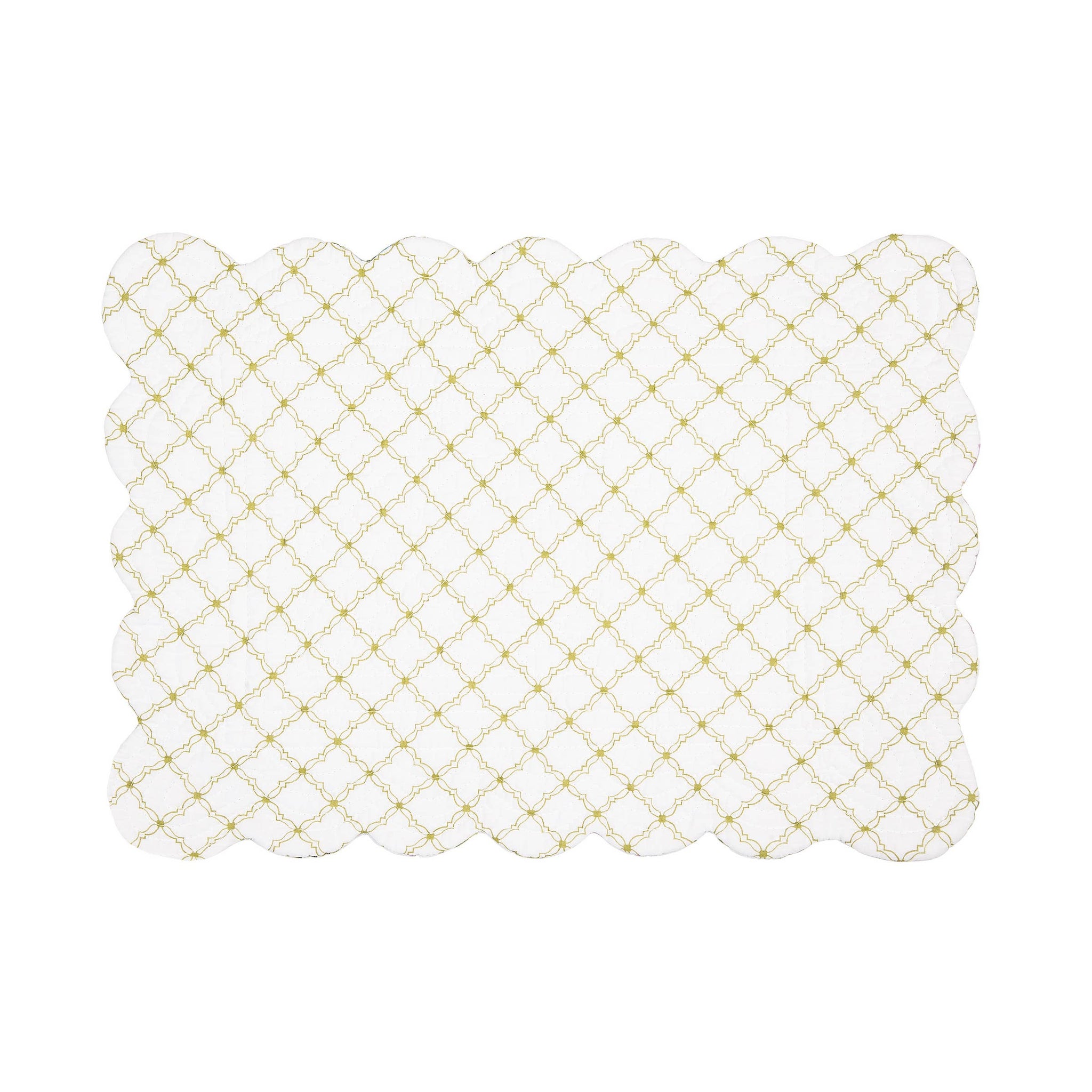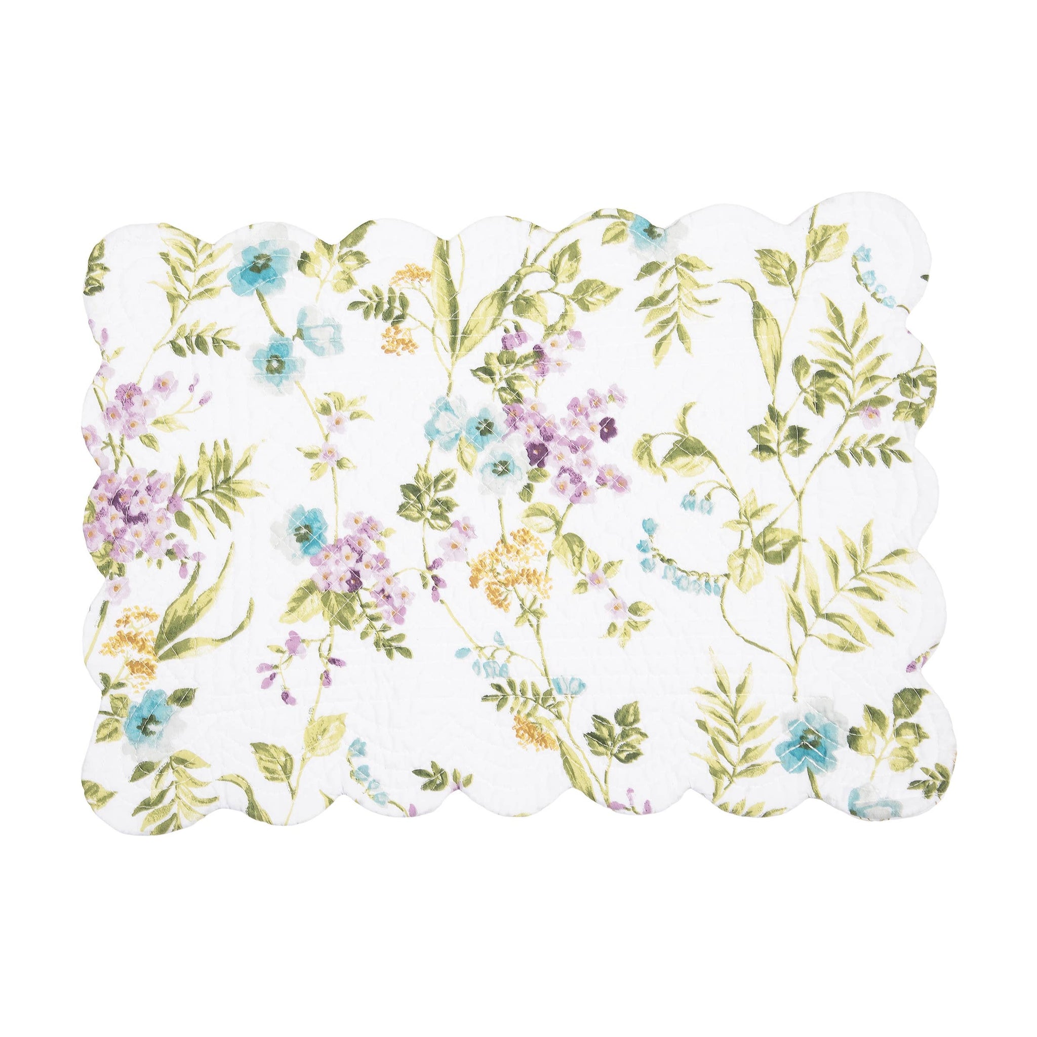 Embrace the beauty of spring all year round with the Carley placemat. The painterly flowers in a stunning array of blue, purple, and yellow on flourishing green stems evoke a sense of rejuvenation. For more styling options, these table linens reverse to a simple, yet charming yellow rosebud-style trellis pattern on a white background.