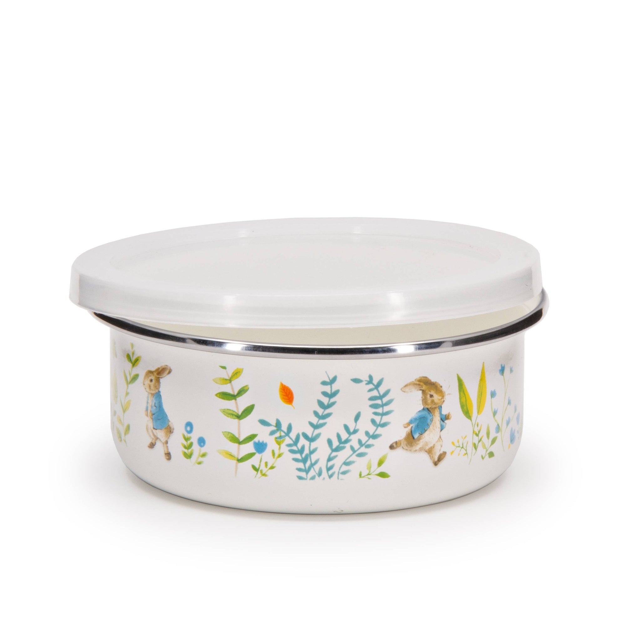 Spring Leaves Pattern 14 ounce Soup Bowls; 5 inch wide x 2 inch deep Beatrix Potter was an English children’s author well-known for bringing joy to countless generations of children over the years with timeless characters such as Peter Rabbit. We’re very proud to present the nostalgia of Beatrix Potter reflected in our child set enamelware collection to help bring the enjoyment of the storybook to the table setting. See the many character designs below!