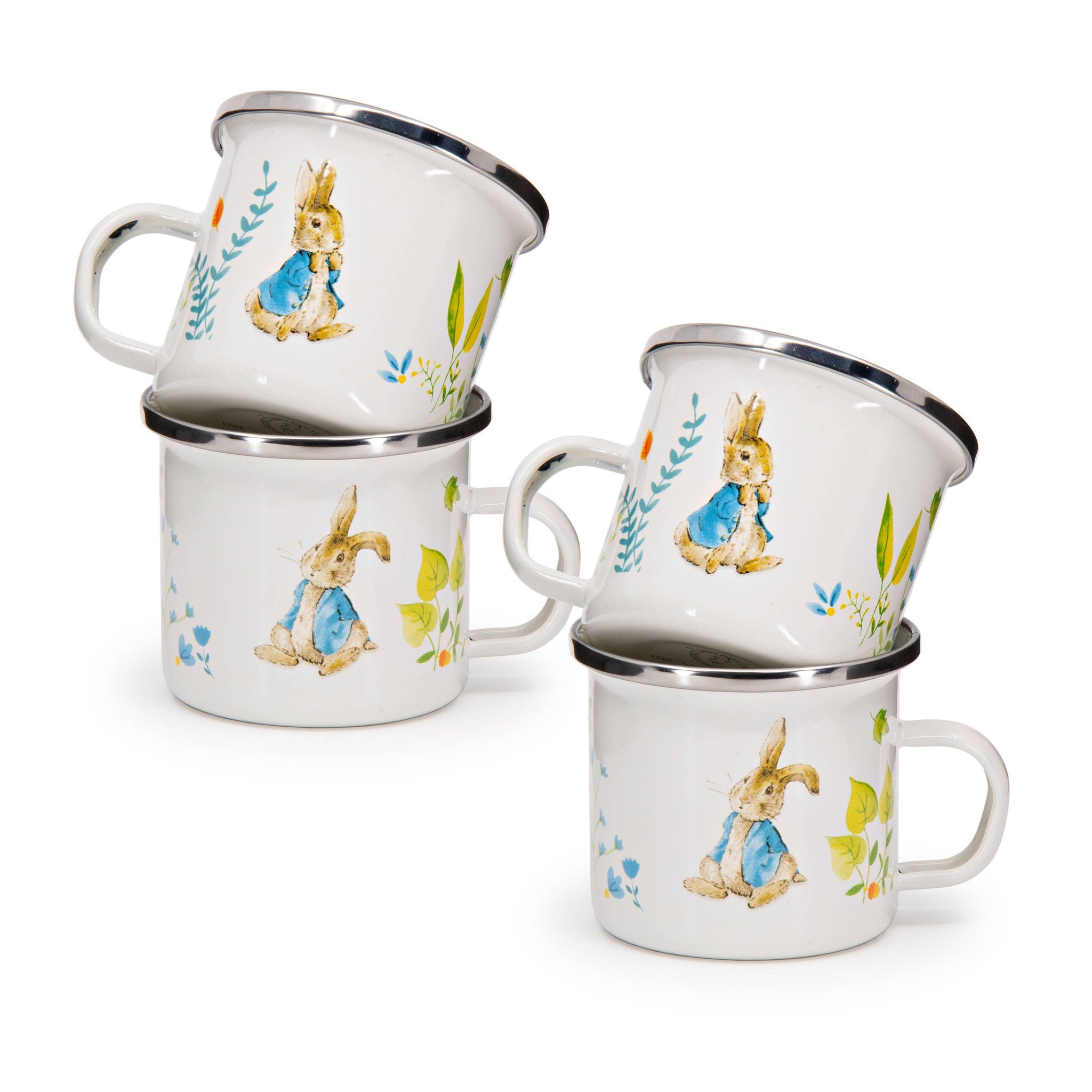 Spring Leaves Pattern 4 ounce Child Mug, 2.25 inch tall Beatrix Potter was an English children’s author well-known for bringing joy to countless generations of children over the years with timeless characters such as Peter Rabbit. We’re very proud to present the nostalgia of Beatrix Potter reflected in our child set enamelware collection to help bring the enjoyment of the storybook to the table setting. See the many character designs below!