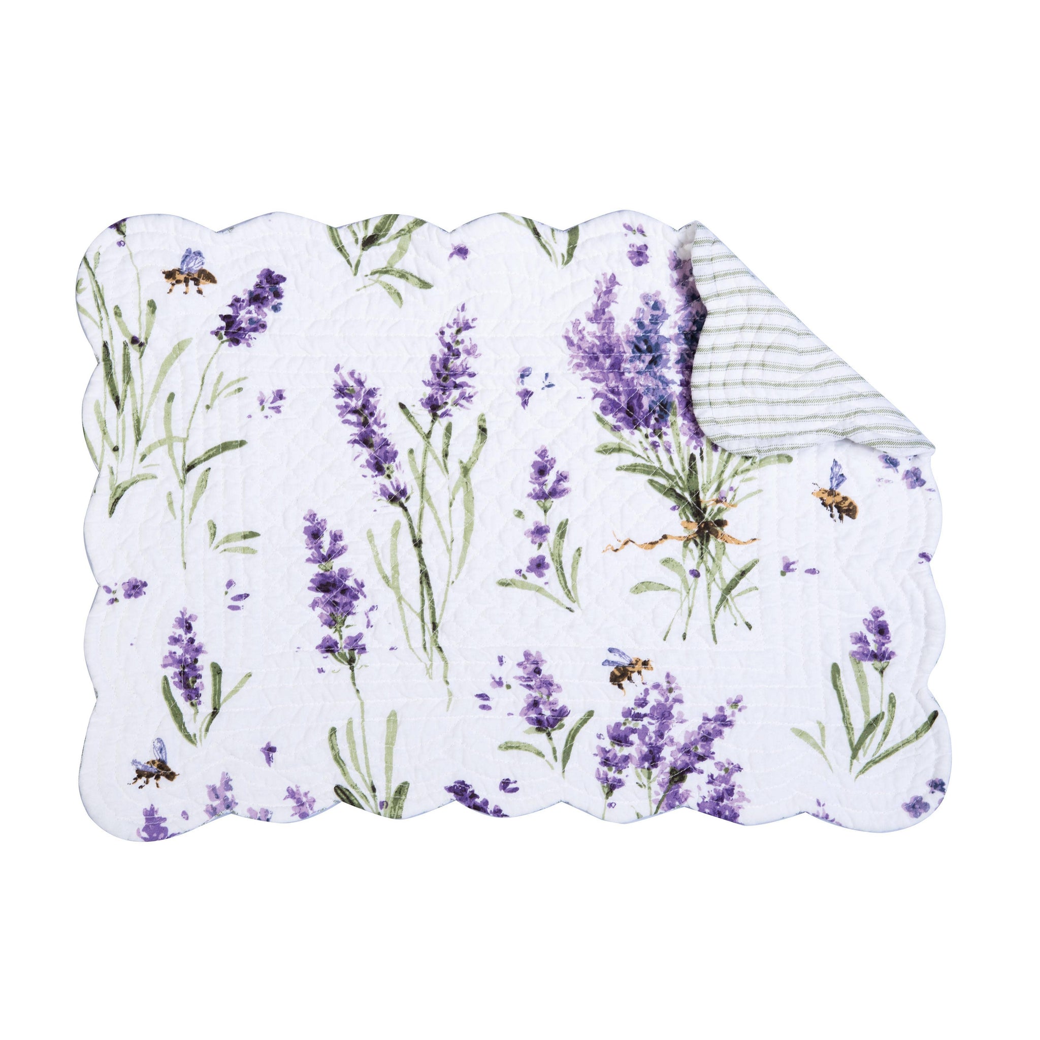 Featuring the stunning artwork of Lisa Audit, this cotton placemat showcases a serene watercolor lavender pattern that bursts gracefully across the fabric, evoking a sense of tranquility and natural elegance. Soft hues of muted lavender purples and fresh greens contrast beautifully against the crisp white background, creating a soothing and sophisticated color palette that complements a variety of decor styles. Reverses to a coordinating green and white stripe pattern for more styling options.