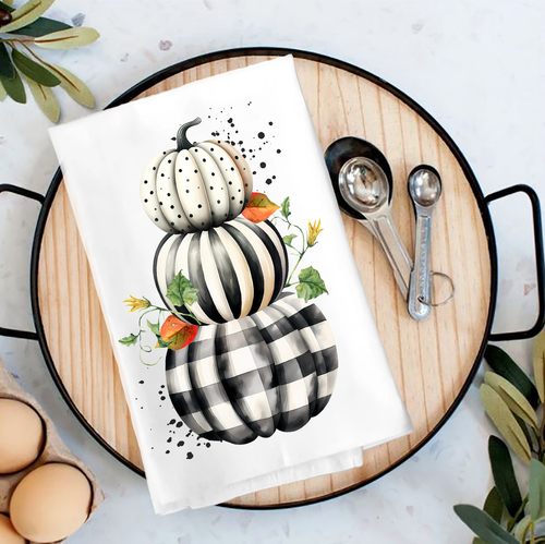 36-56 Fall Black and White Checkered Pumpkins Tea Towel