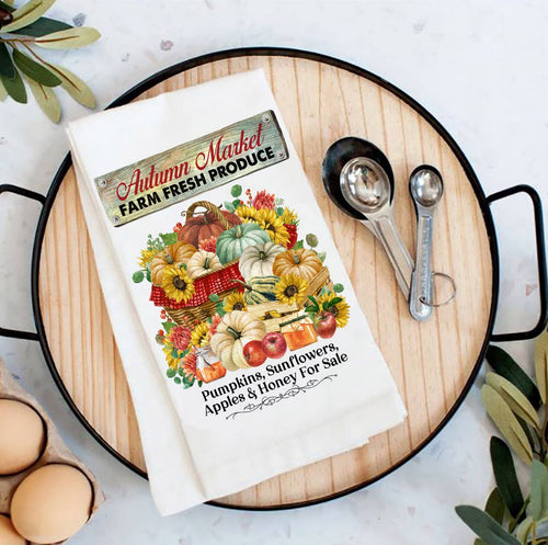 36-57 Autumn Fall Market Pumpkins Apples Flour Sack Tea Towel